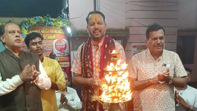 श्री सिद्ध हनुमान जी की हुई 122 भव्य महाआरती सामिल हुए । भागवत भूषण पंडित श्री विजय शर्मा जी जांजगीर वाले