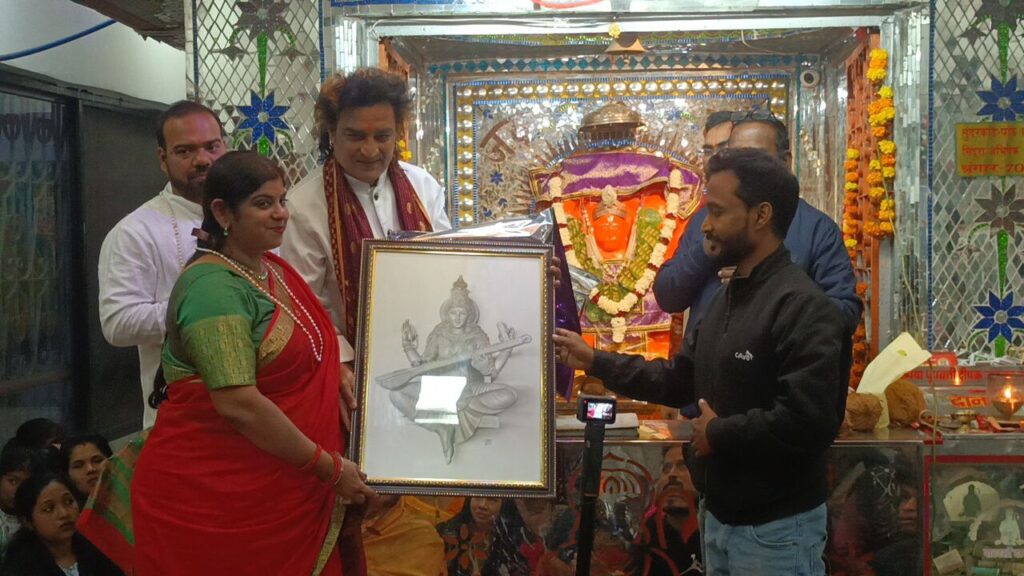 इस अवसर पर भजन गायक श्री राकेश शर्मा जी महाराज को मां सरस्वती का छायाचित्र सप्रेम भेंट कर सम्मानित किया गया।