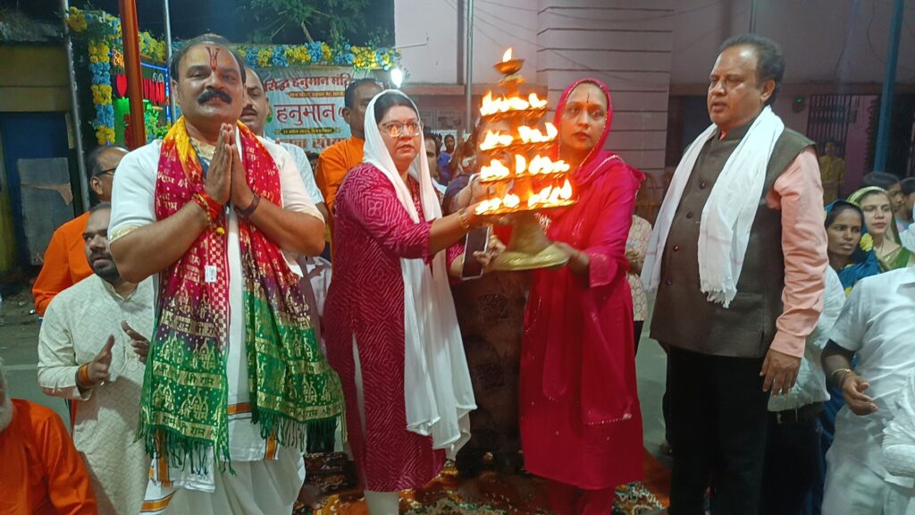 श्री सिद्ध हनुमान मंदिर में 107 महाआरती भागवत भूषण शुकदेव तिवारी जी के सानिध्य में हुआ।