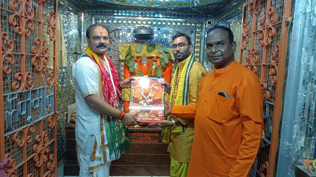 जून महीने के प्रथम मंगलवार दिनाँक 03 तारीख को भागवत भूषण शुकदेव तिवारी जी सरखो ग्राम से समय से पूर्व पहुँचे सक्ती पहुँचे महराज जी को मौली फिश में ठहराया गया जहाँ पर मौलीश्वर महादेव के सवा इंच के शिवलिंग को देख प्रणाम किये धूप दीप पुष्प से पूजा कर प्रसन्न हुये जल पान कर महाआरती के विषय मे चर्चा किये फिर जैसे ही समय हुआ अपने निजी वाहन कार से हनुमान गेट पहुँचे जहाँ पर मंदिर परिवार के छोटे बड़े सदस्य पहले से महराज जी की प्रतीक्षा में खड़े हुये थे सभी ने बारी बारी महराज जी के चरण सपर्स किये एवं जय श्री राम, जय हनुमान के जयकारा के साथ मंदिर तक आये अतिथि पंडित जी ने मंदिर के चौखट को प्रणाम कर मंदिर प्रवेश किये मंदिर के पुजारी ओमप्रकाश वैष्णव जी ने अतिथि पंडित जी को तिलक कर चुन्नी भेट कर स्वागत किये एवं साथ मे आये सोनी जी को तिलक कर मोती की माला से स्वागत किये फिर पुजारी जी ने मंदिर का पट बन्द कर हनुमान लला के श्रृंगार में जुट गये कुछ देर बाद जब पट खुला तो हनुमान लला का दिव्य श्रृंगार का दर्शन सभी भक्तो ने किये अतिथि पंडित जी हनुमान लला की छवि देख कर प्रसन्न हो गये पुजारी जी के द्वारा गणेश वंदना से कार्यक्रम की शुरुआत हुई ईधर मंदिर से बाहर बिलासपुर से आई अनिता तम्बोली एवं महिला सदस्यों के द्वारा पंचदीपक आरती एवं 51 दीपो से सजी महाआरती प्रज्वलित की गई फिर पंडित जी ने पंचदीपक गणेश आरती किये फिर 51 दीपो से सजी महाआरती किये। आज 107 महाआरती में मंदिर के मार्गदर्शक पंडित देवी प्रसाद वैष्णव जी, रविन्द्र मिश्रा जी, जगत शर्मा जी के साथ सभी भाक्तो के द्वारा महाआरती किया गया एवं सामूहिक हनुमान चालीसा का पाठ सभी ने राम नाम के साथ किये। चालीसा पूर्ण होने के बाद अतिथि शुकदेव तिवारी जी को गर्भ गृह में आमंत्रित किया गया जहाँ बड़े भाव से हनुमान जी के चरणों मे माथा टेके फिर पुजारी जी ने तिलक कर हनुमान जी की छाया छवि भेट किये।