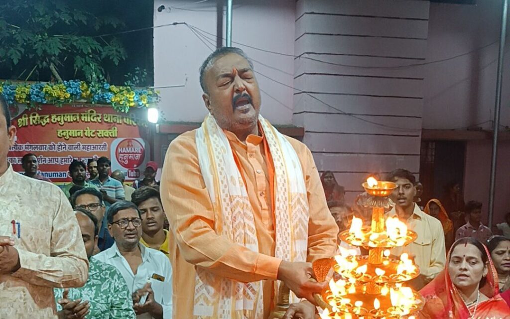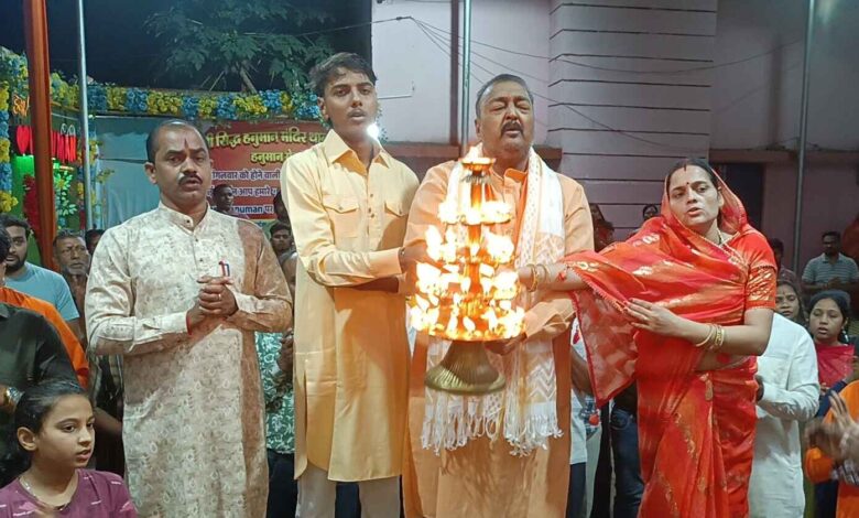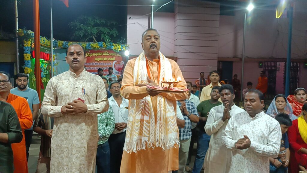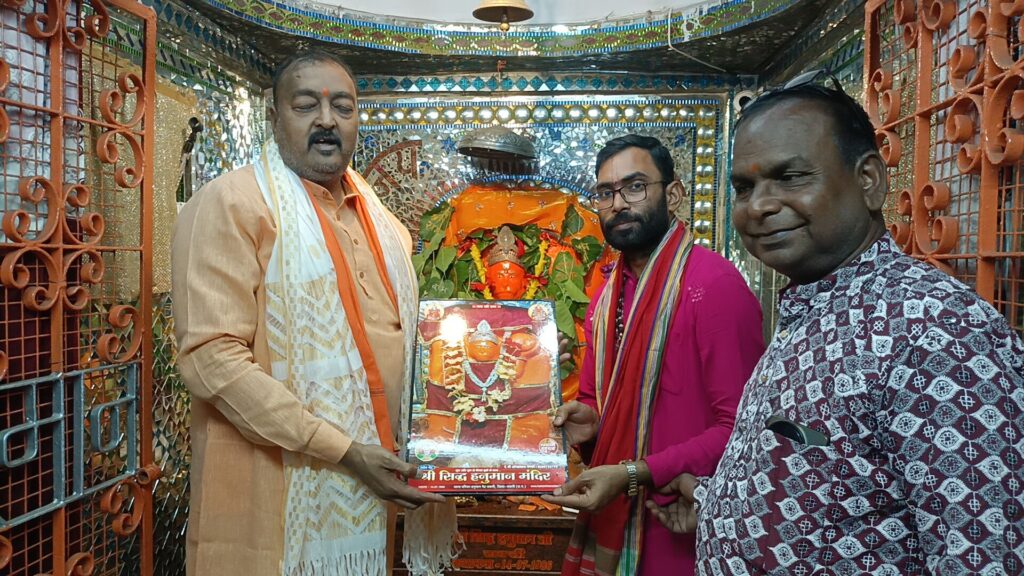 फिर प्रत्येक मंगलवार की तरह जयकारा के साथ स्वागत, मंदिर में प्रवेश, तिलक के साथ चुन्नी भेट कर स्वागत, अन्य अतिथि को तिलक और मोती की माला से स्वागत, पट बन्द कर श्रृंगार, पट खुलते ही हनुमान जी का दिव्य दर्शन, गणेश वंदना, पंचदीपक गणेश आरती एवं 51 दीपो से सजी आरती को श्रीमती कांति मौर्य राजनांदगांव एवं बाबा धाम सेवा समिति सक्ती की महिला सदस्यों के द्वारा प्रज्वलित किया गया प्रथम महाआरती आदरणीय पंडित श्री किशन शर्मा जी के द्वारा किया गया फिर बाकी भक्तों के द्वारा बारी बारी किया गया एवं सामूहिक हनुमान चालीसा का पाठ हुआ, अतिथि पंडित जी को गर्भ गृह में आमंत्रित किया गया जहाँ हनुमान जी के चरणों मे माथा टेके फिर पुजारी ओमप्रकाश वैष्णव जी कोडके मौर्य ने श्री सिद्ध हनुमान जी की छाया चित्र अतिथि को भेट किये।