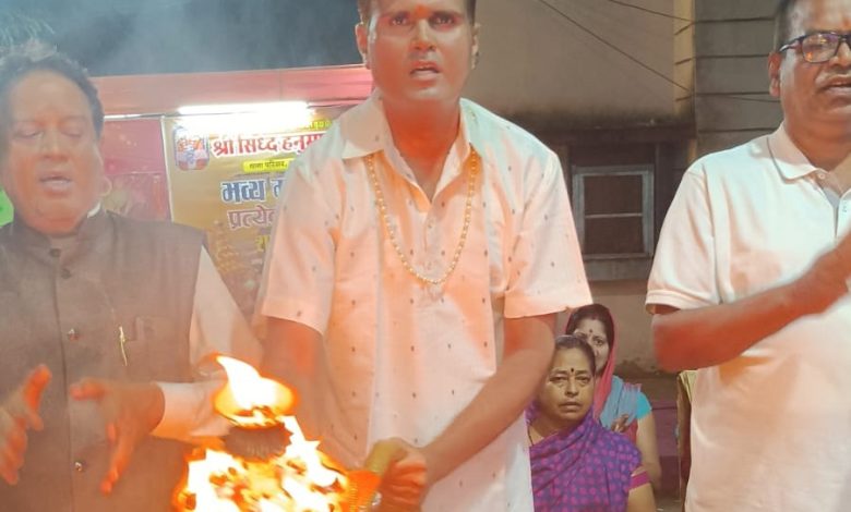 सक्ति के श्री सिद्ध हनुमान मंदिर थाना परिसर हनुमान गेट सक्ति में हुआ 29 वा महाआरती