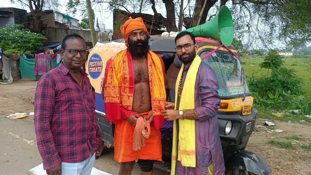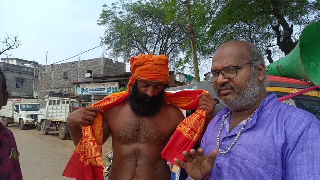 इस बात को सुनते ही श्री सिद्ध हनुमान मंदिर परिवार में चर्चा कर उस महापुरुष का अपने अपने स्तर में सभी पता करना चालू किये की वो महापुरुष कहा पहुँचे कुछ कुछ घंटों में अपडेट प्राप्त कर रहे थे और 12 बजे के आसपास वो महापुरुष कंचनपुर पेट्रोल पंप के पास पहुँचने की सूचना मिला फिर तुरंत पुजारी ओमप्रकाश वैष्णव जी, कोडके मौर्य एवं अमित तम्बोली कंचनपुर पहुचकर का महापुरुष से चर्चा कर पता किये की महापुरुष का नाम राजगिरी महराज है और वो राजस्थान के करोली के रहने वाले है वही से 18 अप्रैल 2025 से वो कर नापने की यात्रा की सुरुवात किये है अकेले व्यक्ति साथ मे किसी प्रकार कोई समान नही है एक भगवा का कमर में पटकु पहने हुये है और सर पर भगवा गमछा लपेटे हुये है। हम सभी के चर्चा के बाद पुजारी ओमप्रकाश जी ने राधा नाम का एक गमछा भेट कर सम्मान किये एवं गर्मी से बचने हेतु छाछ पिलाये एवं आज संध्या महाआरती में शामिल होने हेतु एवं रात्रि भोजन लिये हमारे श्री सिद्ध हनुमान में आमंत्रित करके आये है। हमारे श्री सिद्ध हनुमान परिवार के तरफ से जगन्नाथ स्वामी से प्रार्थना करते है कि महापुरुष के सारे दुख दर्द को दूर कर जल्दी से जगन्नाथपुरी पहुचाने की कृपा करें।🙏🏻🙏🏻🚩🪷🪔