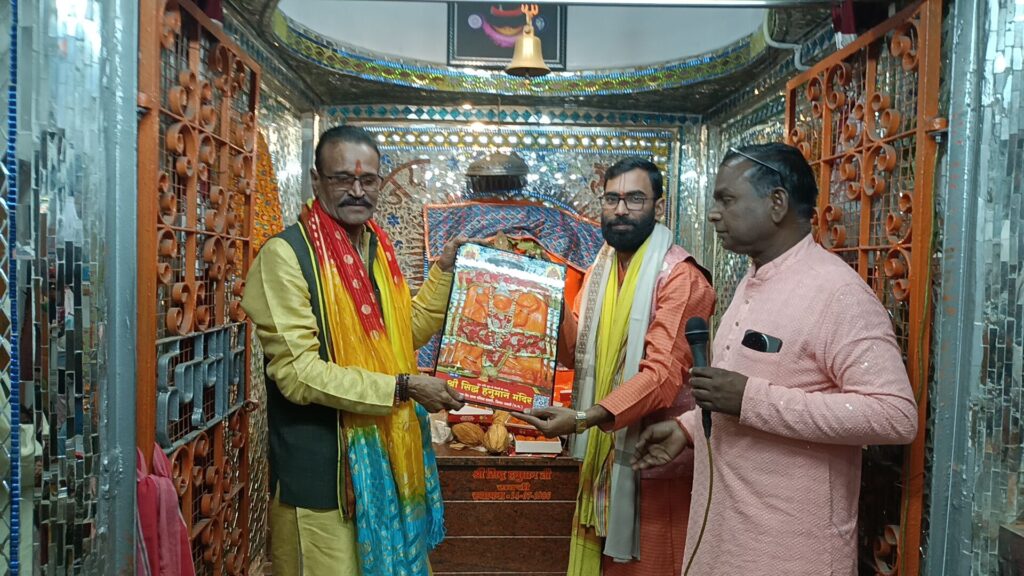 28-01-2025 दिन मंगलवार को मंदिर के पुजारी ओमप्रकाश वैष्णव जी ने बतलाया कि श्री सिद्ध हनुमान मंदिर में सुबह से भक्तो के साथ नगर निकाय चुनाव के प्रत्याशी नेताओ का आशीर्वाद लेने हेतु भारी संख्या में आना जाना लगा रहा सारा दिन मंदिर में दर्शन करनें आये भक्तो के द्वारा चुनाव की चर्चा चलते चलते शाम हो गई और देखते देखते महाआरती का समय हो गया पुजारी जी ने बतलाया कि 89 महाआरती में सक्ति के बाब्बा महाराज के नाम से जाने जाने वाले आदरणीय पंडित श्री राजेश शर्मा जी (ब्राम्हण सामाज के पूर्व अध्यक्ष)को फोन करके निमंत्रण दिया गया था कि वो 28 तारीख मंगलवार को आप शाम 07 बजे महाआरती के लिये आये और आदरणीय पंडित जी ने पुजारी जी के निमंत्रण को मुस्कुराते हुये स्वीकार किये और सही समय मे पहुँच।