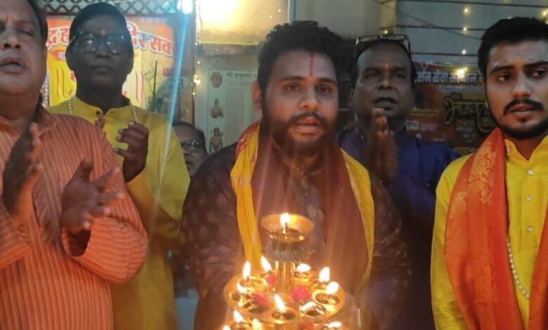 शुभ अति शुभ दो पीपल वृक्षों के मध्य विराज मान है श्री सिद्ध हनुमान जी जहा प्रत्येक मंगलवार की भांति इस मंगलवार को भी श्री सिद्ध हनुमान मंदिर थाना परिसर हनुमान गेट शक्ति में 65 वा भव्य महाआरती 13 अगस्त को जिसमे शामिल हुए सिवनी के सुप्रसिद्ध आचार्य पंडित-श्री चंचल पांडेय महाराज जी के सानिध्य में हुई। महाराज जी को श्री सिद्ध हनुमान मंदिर परिवार के सभी सदस्य ससम्मान मंदिर लाया गया मंदिर में परम आदरणीय पंडित ओमप्रकाश जी के द्वारा महाराज श्री चंचल पांडेय जी को चुन्नी भेंट कर तिलक लगा कर हनुमान जी का दर्शन कराया तत्पश्चात महाराज जी के द्वारा गणेश जी की आरती एवं हनुमान जी की 51 दीपो से सजी हुई महाआरती कर हनुमान चालीसा का सामूहिक पाठ कराया गया महाराज जी ने कहा इस महाआरती में शामिल होना बड़ी सौभाग्य की बात है आप सभी भक्तों पर हनुमान जी की कृपा सदैव बनी रहे कहा और सभी भक्तों का अपना आशीर्वाद प्रदान किया। इस सुनहरे पल को मोबाइल में फोटो कैप्चर किया श्री रिंकू निर्मलकर जी के द्वारा एवं मंच संचालन श्री नारायण प्रसाद मौर्य (कोंडके) जी के द्वारा किया गया श्री सिद्ध हनुमान मंदिर परिवार के सभी सदस्य शामिल हुए अगस्त माह के 13 अगस्त मंगलवार को हनुमान जी का सुबह का श्रृंगार– आनंद कुमार अग्रवाल के शाम का श्रृंगार– पुलिस कॉलोनी महिला समिति के द्वारा कराया गया।