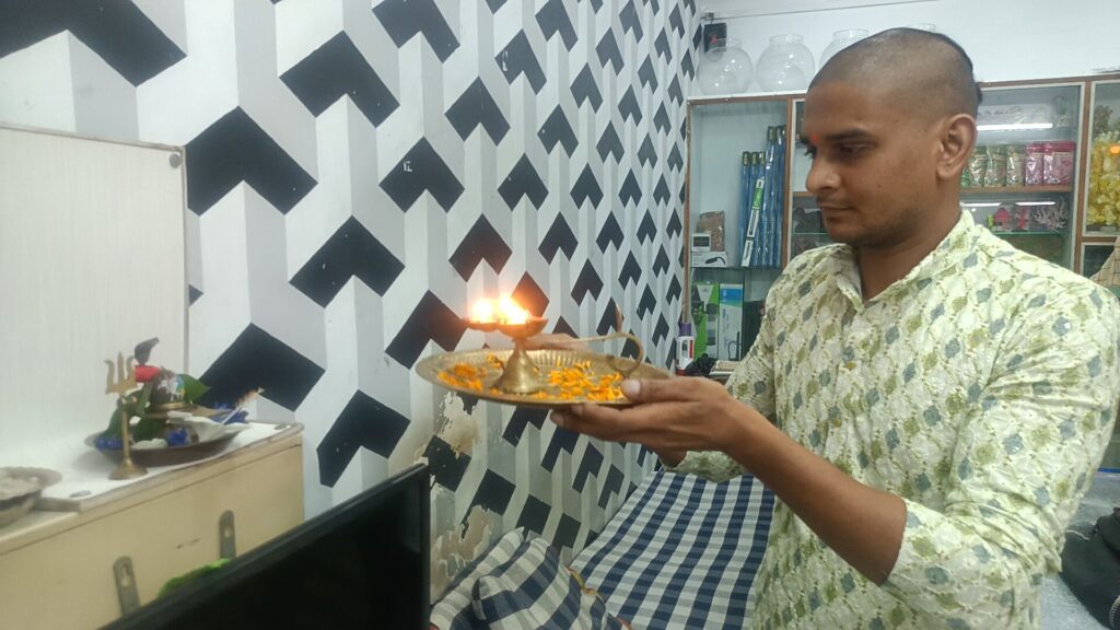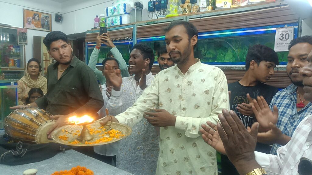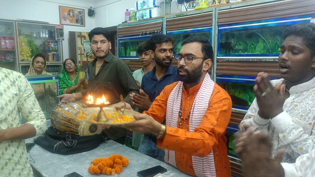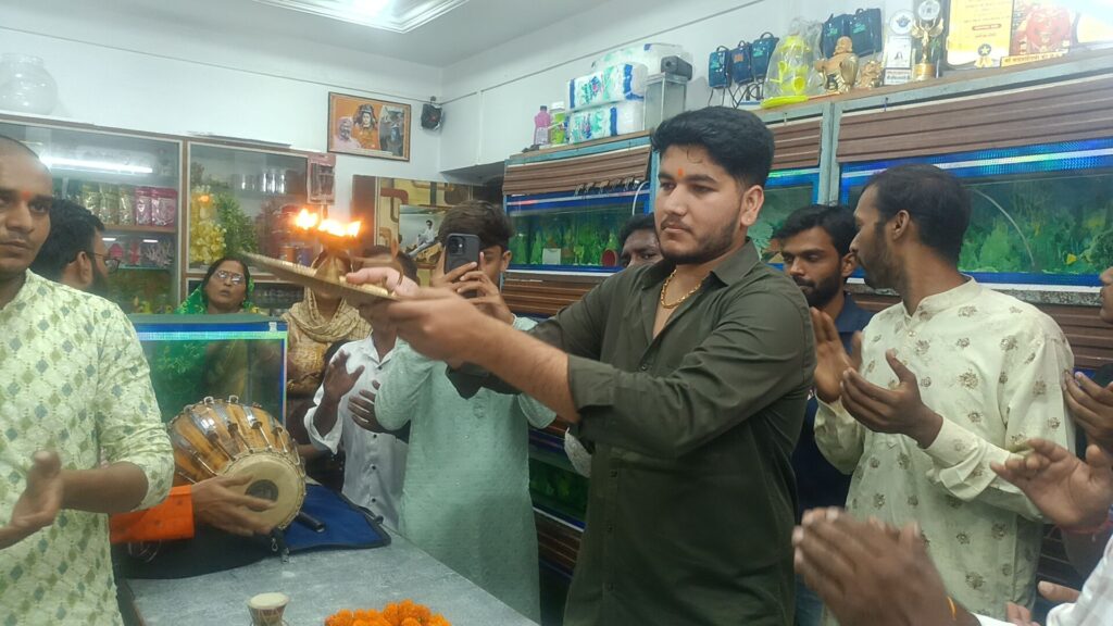 श्री सिद्ध हनुमान मंदिर के सदस्य अमित तम्बोली के प्रतिष्ठान मौली फिश एवं एक्योरियम मे एक सवा इंच का शिव लिंग स्थापित है इस शिव लिंग का नाम मौलीश्वर महादेव रखा गया है इस मौलीश्वर महादेव पर प्रतिदिन अभिषेक कर श्रृंगार मे अलग अलग देवी देवताओं का छाया चित्र अमित तम्बोली के द्वारा अपने हाथों से अंकित किया जाता है। इसी समन्ध में 30 अक्टूबर की सुबह अभिषेक कर श्रृंगार में गौ माता के साथ श्री कॄष्ण का छाया चित्र बनाया गया था वो बहुत प्यारा दिख रहा था। और इस रूप के दर्शन पूजन हेतु तम्बोली जी के द्वारा श्री सिद्ध हनुमान मंदिर के पुजारी पंडित ओमप्रकाश वैष्णव को मंदिर परिवार सहित आमंत्रित किया गया था एवं गौ सेवा सेल्टर के प्रमुख मयंक ठाकुर को भी सभी सहयोगी ग्रुप के साथ आमंत्रित किया था अमित जी ने बतलाये की पंडित जी और ठाकुर जी ने बडे भाव से हामी भरी फिर शाम 6 बजे मंदिर और गौ सेल्टर के सभी सदस्य मौलीश्वर महादेव के दर्शन कर पुष्प अर्पित किये फूल चढ़ाये एवं केला और मीठा प्रसाद का भोग लगाये फिर प्रथम पंच दीपक आरती मयंक ठाकुर के द्वारा किया गया और सभी ने बारी बारी आरती किये। पुजारी ओमप्रकाश जी के द्वारा आरती पढ़ी गई एवं कई भजन भी ढोलक के ताल के साथ गये। अतिथि के रुप मे आये सदस्य पंडित ओमप्रकाश वैष्णव, कोडके मौर्य, सोनू देवांगन, पप्पू खर्रा, बाबा बेदी, सुरेश देवांगन, मयंक ठाकुर, स्वपनिल चौबे, पप्पू खर्रा और भी कई सदस्यों के साथ झरना तम्बोली एवं अमित तम्बोली का पूरा परिवार हुआ शामिल।