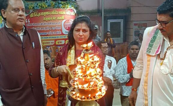 इस महाआरती में देवी स्वरूपा पूज्या सुमन किशोरी जी (राष्ट्रीय कथा वक्ता, श्रीधाम वृंदावन) पधारीं।