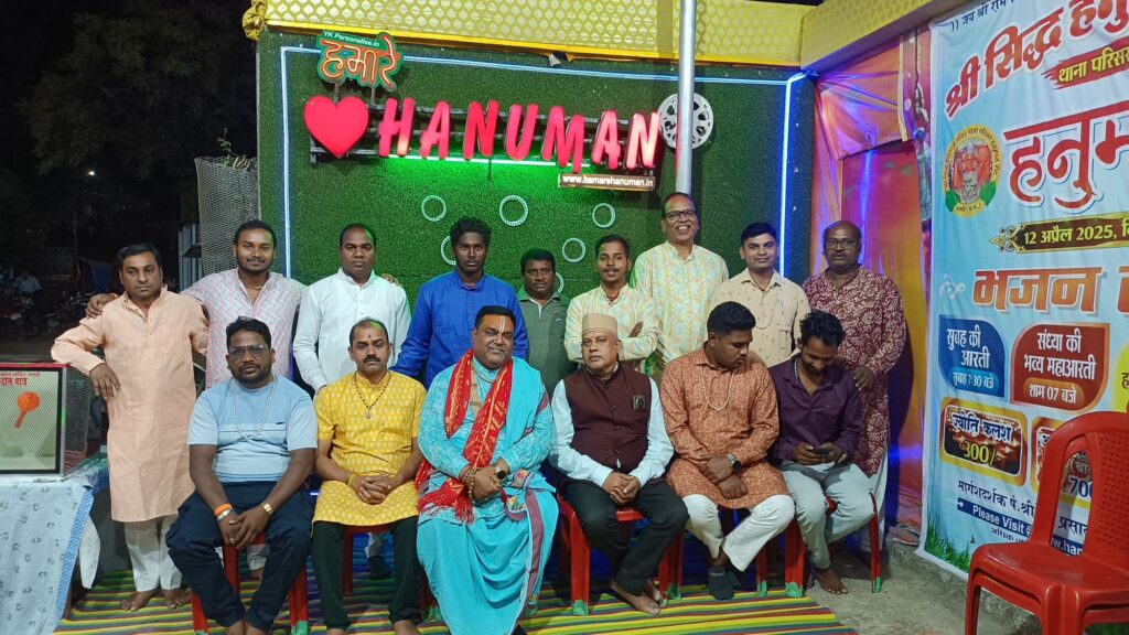 जय श्री राम जय हनुमान श्री सिद्ध हनुमान मंदिर सक्ति में 18-3-2025 को महाआरती का 96 वा सप्ताह में शामिल हुये आदरणीय कथावाचक पंडित मनोज तिवारी जी इनका निवास साराडीह(डभरा) है आदरणीय पंडित जी का भागवत कथा लगातार चलता रहता है इस व्यस्तता के कारण महराज जी से सम्पर्क नही हो पा रहा था पर जैसे ही हनुमान जी का जादू चला तो भागवत कथा के विश्राम दिन की तारीख और मंगलवार की तारीख एक दिन पढ़ने के कारण महराज जी ने श्री सिद्ध हनुमान मंदिर के पुजारी एवं सदस्यों का निमंत्रण स्वीकार कर महाआरती में शामिल होने के लिये तैयार हो गये एवं समय से पूर्व सक्ति पहुँच गये हनुमान मंदिर के सदस्य अमित तम्बोली महराज जी को ससम्मान अपने प्रतिष्ठान लेके गये जहाँ विराजे मौलीश्वर महादेव के दर्शन कराने के बाद जलपान करवाये एवं महाआरती के समय होते ही महराज जी को हनुमान गेट लेके पहुँचे जहाँ पर पूरा हनुमान मंदिर परिवार के सदस्य पहले से ही अतिथि के इंतजार में खड़े हुये थे महराज जी के आगमन होते ही जय कारा के साथ स्वागत किया गया फिर हमेशा की तरह पुजारी ने तिलक कर चुन्नी भेट कर स्वागत किया फिर गणेश वंदना, गणेश आरती, महाआरती, सामूहिक हनुमान चालीसा, छाया चित्र भेट, आशीर्वचन फिर सेल्फी जोन में सभी महिला पुरुष सदस्यों के साथ फोटो क्लिक की गई एवं विदाई दी गई महराज जी अगले भागवत कथा के कलश यात्रा के लिये रवाना हुये