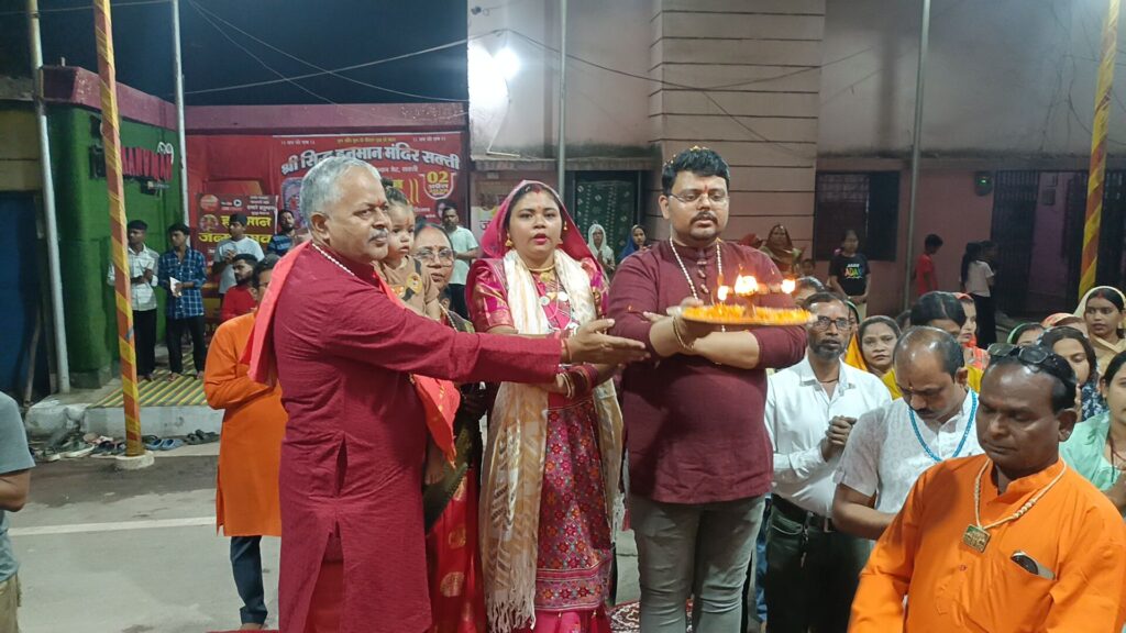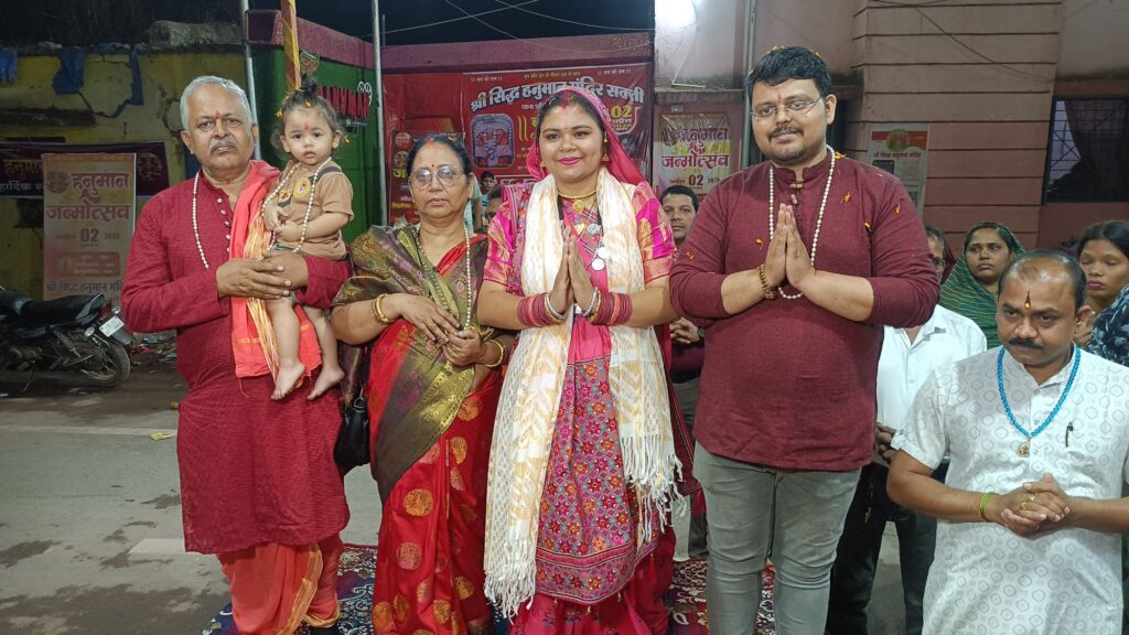 सक्ती। नगर के प्रतिष्ठित श्री सिद्ध हनुमान मंदिर में भक्ति और उत्साह का अनूठा संगम देखने को मिला, जहाँ 148वीं भव्य महाआरती का आयोजन किया गया। इस विशेष अवसर पर रायगढ़ की सुप्रसिद्ध यूटूबर श्रीमती श्रिया दूबे अपने पूरे परिवार के साथ शामिल हुईं। उनके आगमन से मंदिर परिसर में श्रद्धालुओं का भारी हुजूम उमड़ पड़ा।