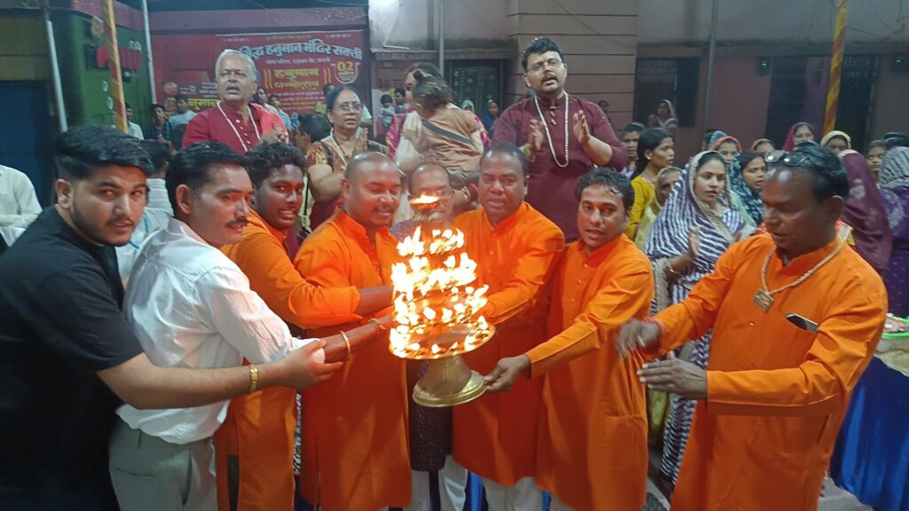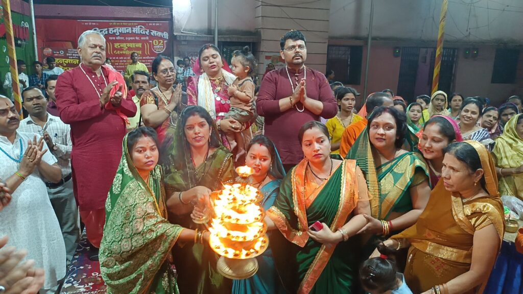 इस महाआरती का मुख्य आकर्षण 51 दीपों से सजी भव्य थाली रही, जिसे स्थानीय मातृ शक्तियों द्वारा प्रज्वलित किया गया। पहली महाआरती श्रिया दूबे ने की, जिसके बाद उनके पूरे परिवार ने मिलकर बजरंगबली की आराधना की। भक्तिमय वातावरण में सभी भक्तों ने एक स्वर में सामूहिक हनुमान चालीसा का पाठ किया।