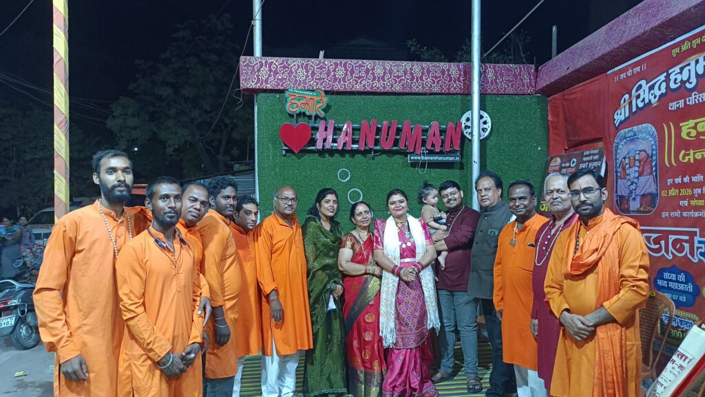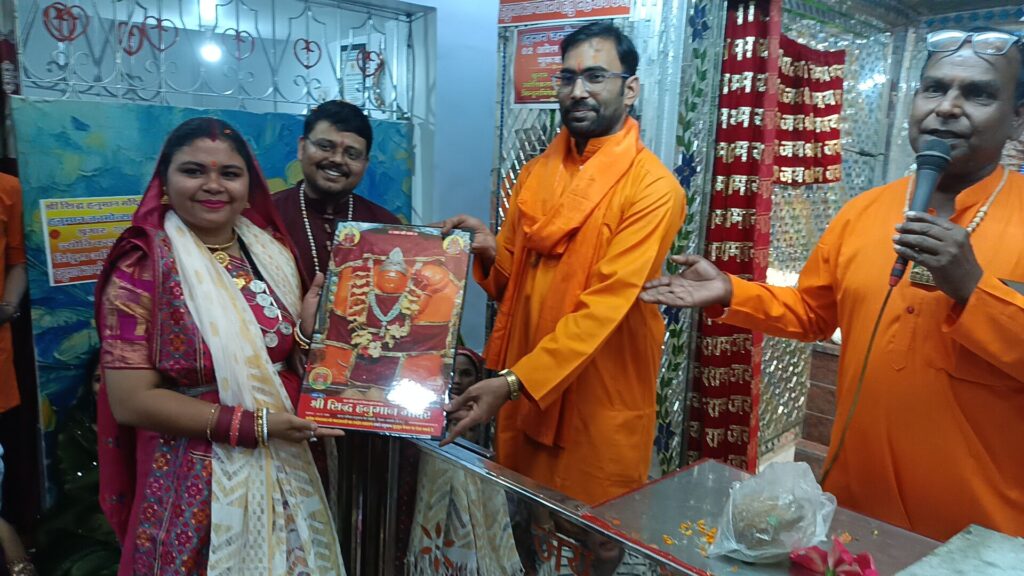 स्वागत के पश्चात हनुमान जी का विशेष श्रृंगार किया गया। जैसे ही मंदिर के पट खुले, श्रिया दूबे ने गणेश वंदना और पंच दीपक आरती के साथ मुख्य अनुष्ठान का प्रारंभ किया।