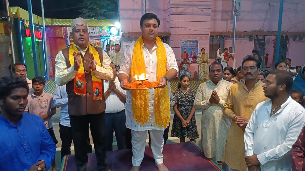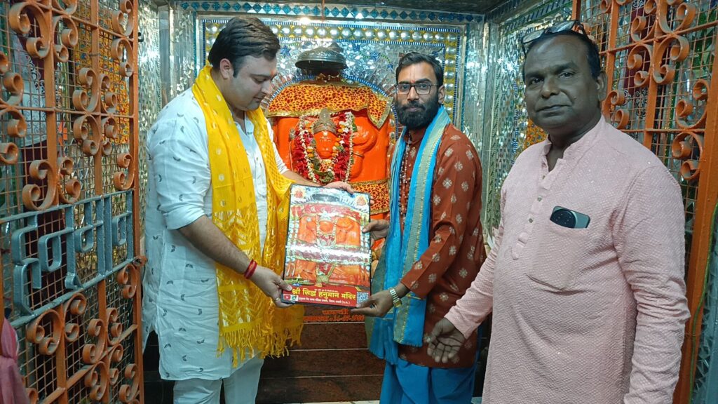 25 फरवरी 25 की शाम 07 बजे श्री सिद्ध हनुमान मंदिर में 93वा महाआरती की गई इस महाआरती में सक्ति के होनहार कम उम्र वाले शिक्षक जो सैकड़ो बच्चो को नई दिशा में चल कर अपना भविष्य बनाने का ज्ञान देने वाले पंडित श्री किशन शर्मा जी को आमंत्रित किया गया वो सही समय पर सपत्नीक एवं माता जी के साथ हनुमान गेट में में पहुँचे जहाँ सभी महिला पुरूष सदस्यो ने जयकारा के साथ स्वागत कर मंदिर लेके आये पुजारी जी द्वारा तिलक कर चुन्नी भेट कर स्वागत किये एवं साथ मे आई महाराज जी की धर्मपत्नी माता एवं दादी जी को पुजारी की श्रीमती ने मोती की माला पहनाकर स्वागत किये फिर पंच दीप आरती प्रज्वलित कर गणेश वंदना एवं गणेश आरती की गई फिर महिला समिति एवं अतिथि परिवार द्वारा 51 दीपो की महाआरती प्रज्वलित की गई प्रथम महाआरती पंडित किशन शर्मा जी के द्वारा की गई फिर सपत्नीक महाआरती किये एवं सपरिवार महाआरती करनें के पश्चात सभी भक्त महाआरती कर पुण्य की प्राप्ति किये एवं सार्वजनिक हनुमान चालीसा का पाठ श्री राम जय राम जय जय राम के साथ किया गया हनुमान चालीसा पूर्ण होने के बाद अतिथि पंडित जी को गर्भ गृह में लाया गया जहाँ हनुमान जी के चरणों मे माथा टेक प्रणाम किये एवं हनुमान जी के पैरो को भी दबाये पुजारी जी न हनुमान जी की छाया छवि भेट किये फिर बारी आई लघु आशीर्वचन देने की बारी सारा कार्यक्रम पूर्ण होने के बाद सेल्फी जोन में अतिथि पंडित जी के साथ सभी हनुमान मंदिर परिवार के महिला पुरुष सदस्यों ने सामूहिक तस्वीर लिये इस प्रकार महाआरती का 93 अध्याय पूर्ण हुआ।